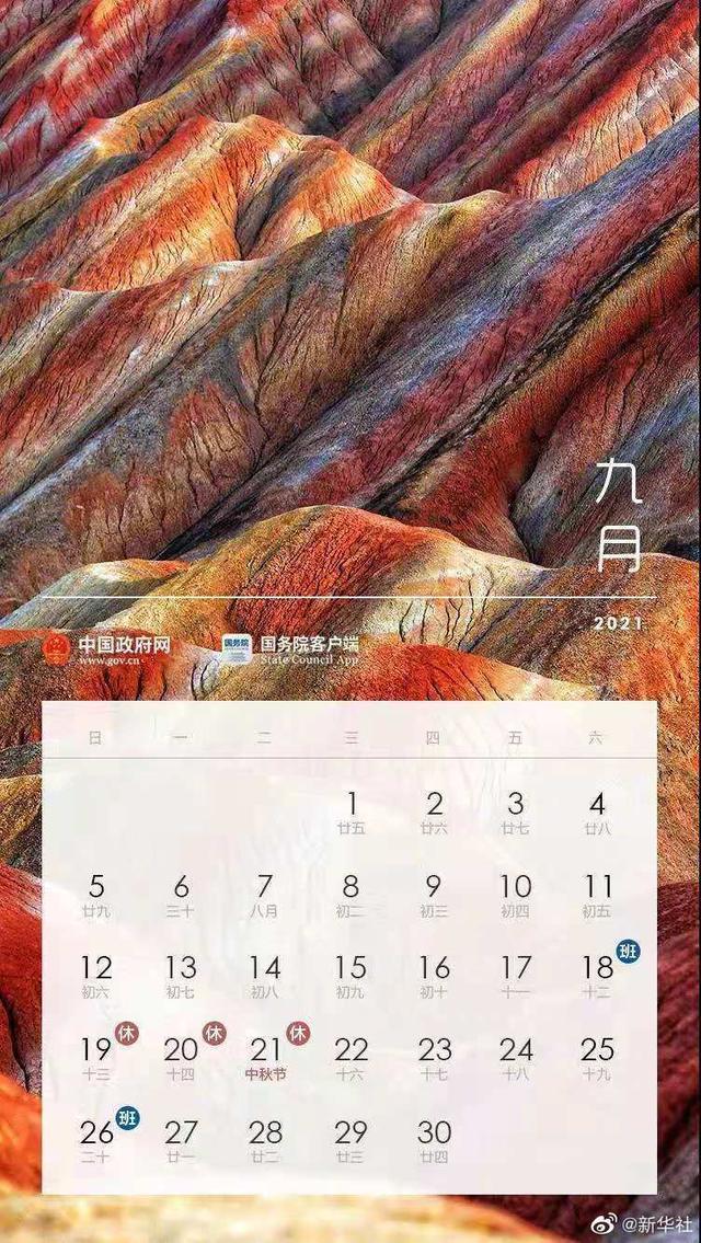 中秋節(jié):9月19日至21日放假調(diào)休,共3天。9月18日(星期六)上班。