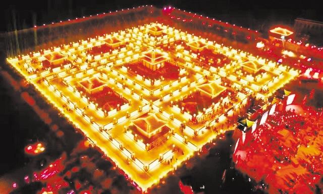 張掖“九曲黃河燈陣啟燈納福”活動。