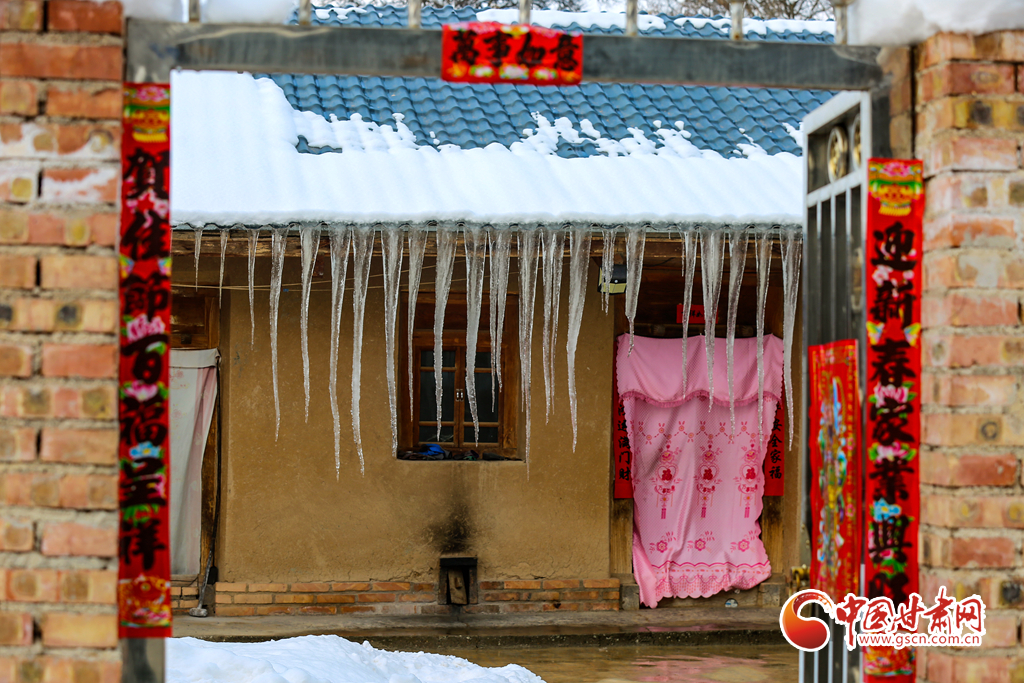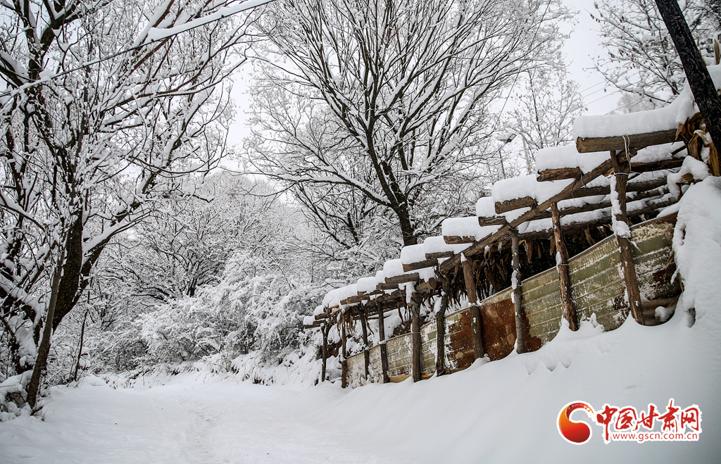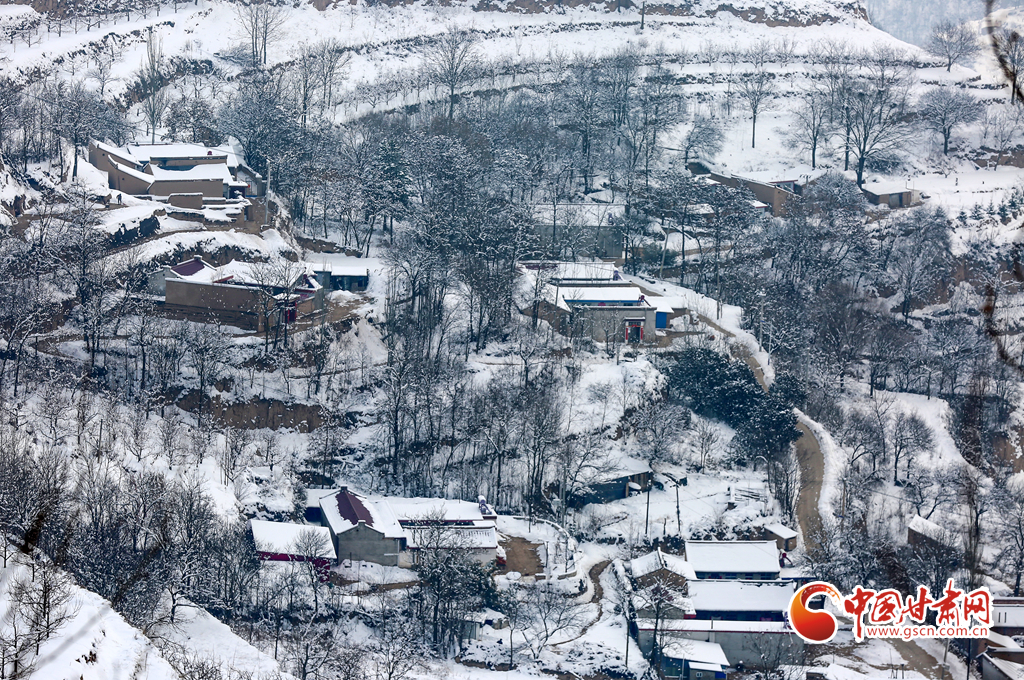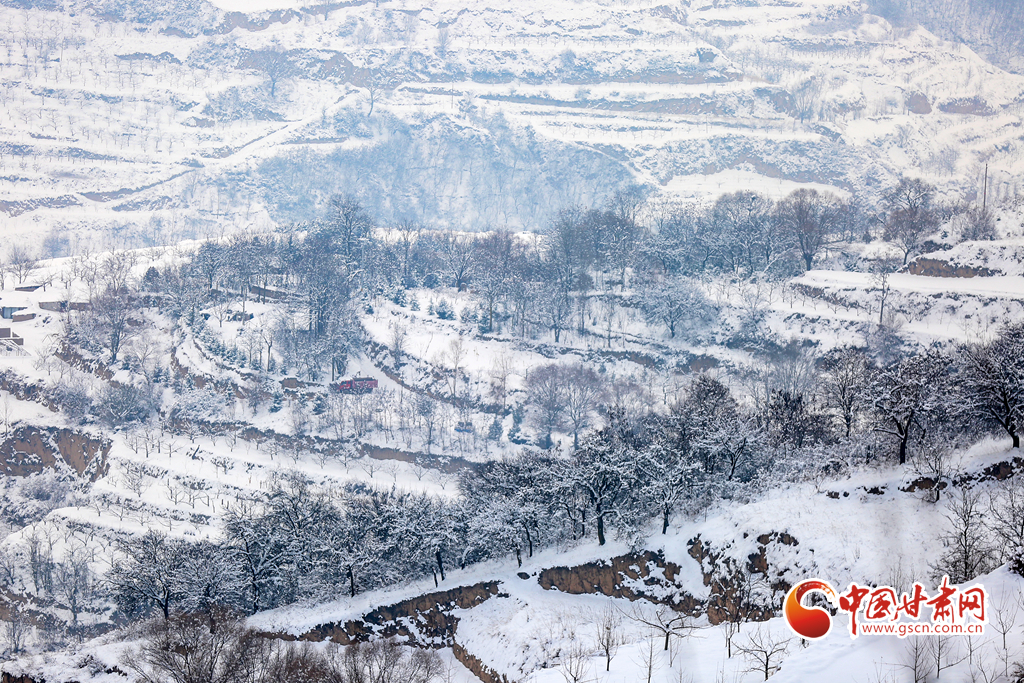 2月8日,雪過天晴,甘肅省平?jīng)鍪徐o寧縣賈河鄉(xiāng)侯山村銀裝素裹,美不勝收。果園、梯田、房屋、公路及遠山構(gòu)成了一幅天然的鄉(xiāng)村畫卷。