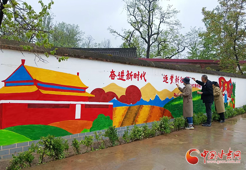 中國(guó)甘肅網(wǎng)4月21日訊(本網(wǎng)記者 李紅軍)4月19日,記者走進(jìn)風(fēng)景如畫的成縣陳院鎮(zhèn),發(fā)現(xiàn)一群人揮舞著手中的“畫筆”,在村莊潔白的墻壁上,勾勒線條、填充顏色,一幅構(gòu)思巧妙、色彩絢麗、栩栩如生的墻體彩繪作品讓一面面白墻“活”了起來(lái),村莊環(huán)境更顯生動(dòng)活潑。