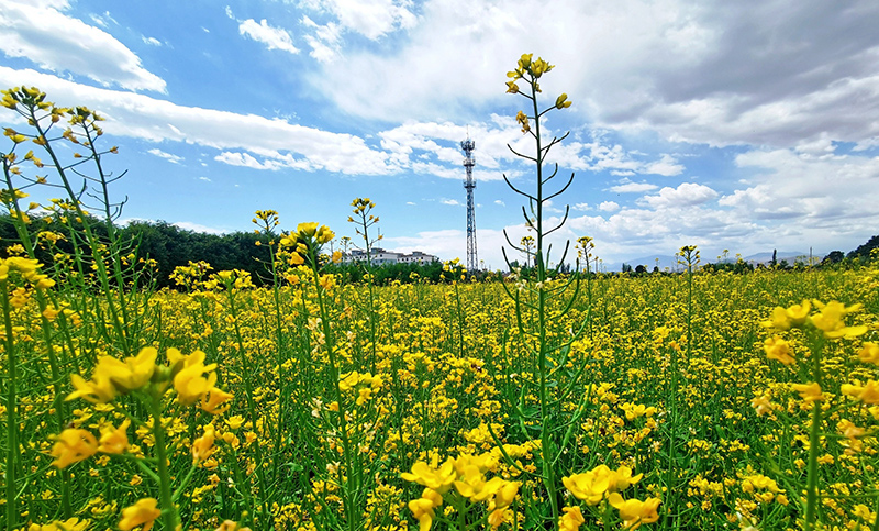 以大地為布,金黃的油菜花開滿鄉(xiāng)間,與鄉(xiāng)村民居交相輝映,構成一幅美麗的鄉(xiāng)村畫卷,也開成了鄉(xiāng)村振興的“致富花”。去年,沙河鎮(zhèn)西寨村、五三村依托“一戶一塊田”高標準農(nóng)田建設后的便利條件,大力調整產(chǎn)業(yè)結構,積極引進專業(yè)合作社在本村建立蔬菜種植基地。今年,沙河鎮(zhèn)種植油菜300多畝,從5月中旬開始,油菜花便陸續(xù)開放,現(xiàn)在已經(jīng)進入全盛時期。