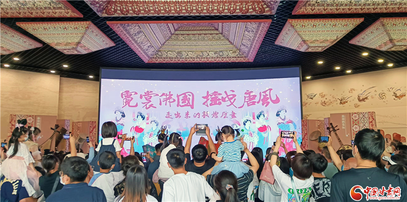 中國甘肅網(wǎng)6月11日訊(本網(wǎng)記者 程健 宋芳科)6月11日上午,值文化和自然遺產(chǎn)日到來之際,敦煌文化研究院在蘭州分院敦煌藝術(shù)館舉辦了“時代共進、人民共享”主題展,通過虛實融合敦煌石窟體驗、敦煌服飾展演、文創(chuàng)產(chǎn)品展示等,向廣大市民群眾全方位呈現(xiàn)了深厚的敦煌文化與莫高窟文化遺產(chǎn)。當(dāng)天的活動,中國甘肅網(wǎng)全程進行了網(wǎng)絡(luò)直播。