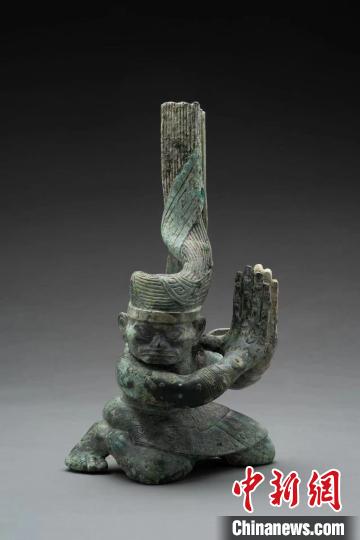 第一件扭頭跪坐人像出土時臉部布滿了銅銹,加之盤發(fā)沖天的造型,考古工作者并未意識到這是一件青銅人像。但這一疑慮很快隨著第二件扭頭跪坐人像的出土而被打破。