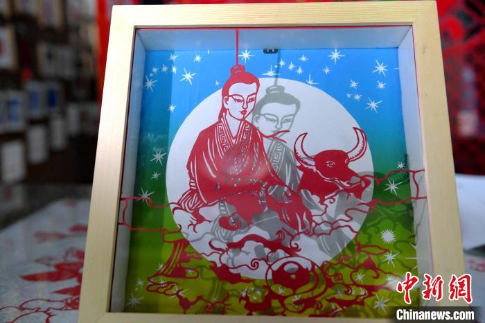 8月4日,是中國傳統(tǒng)節(jié)日七夕節(jié)。河北省衡水市阜城縣剪紙藝人尤金水創(chuàng)作了《牛郎》《織女》《鵲橋相會》三幅“七夕”剪紙作品,傳遞千年浪漫情。據(jù)介紹,作品采用阜城剪紙陽刻的手法,裝裱后利用立體投影的方式,可以把畫面投影到“月亮”上,既浪漫又神奇。