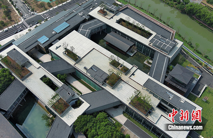 8月1日,航拍杭州國(guó)家版本館。中新社記者 王剛 攝