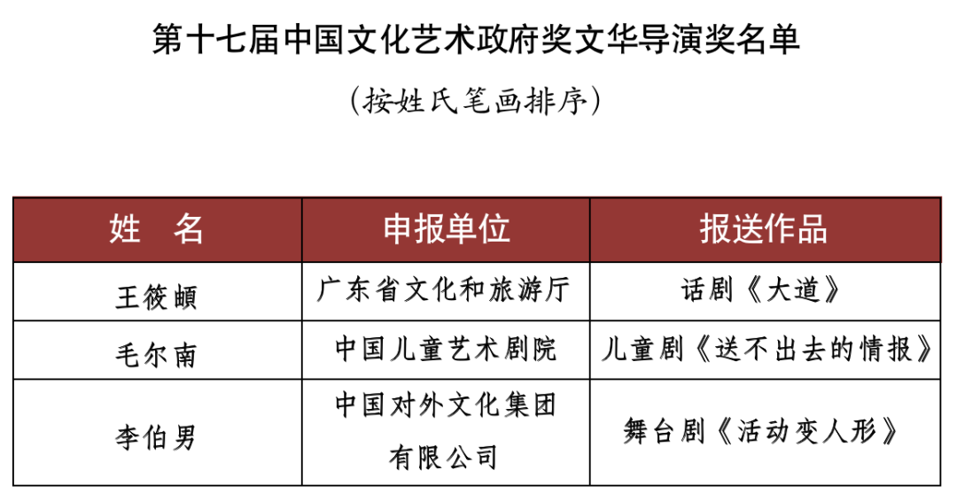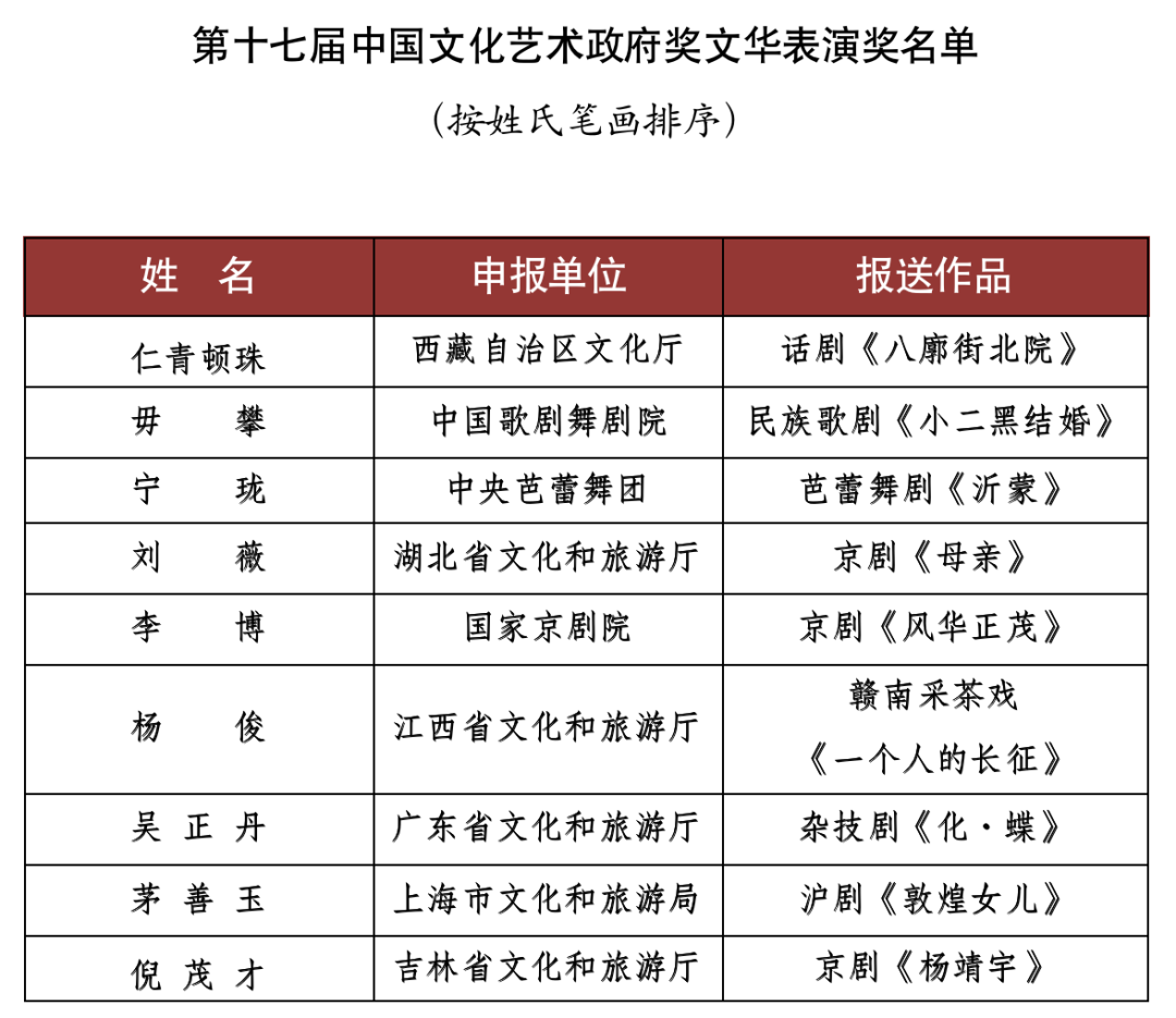 9月15日,文化和旅游部對(duì)外公布了《第十七屆文華獎(jiǎng)獲獎(jiǎng)名單》。舞劇《五星出東方》(北京市文化和旅游局選送)、話(huà)劇《塞罕長(zhǎng)歌》(河北省文化和旅游廳選送)、舞蹈詩(shī)劇《只此青綠》--舞繪《千里江山圖》(中國(guó)東方演藝集團(tuán)有限公司選送)等15個(gè)作品獲得第十七屆中國(guó)文化藝術(shù)政府獎(jiǎng)文華大獎(jiǎng)。