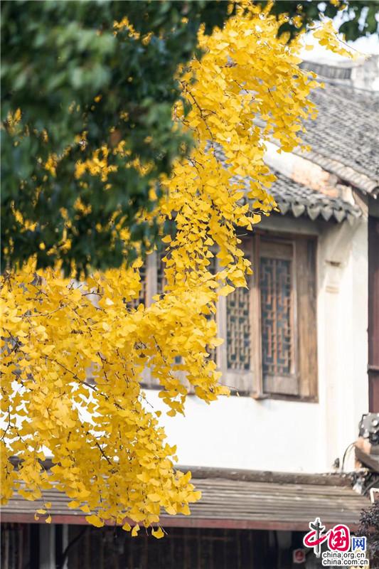 迷失在銀杏葉的金黃色夢里,人與秋俱醉。去博物館吧,門前的銀杏快黃了。目光落在樹梢,大片大片的金燦籠絡著秋味,層層疊疊,如軟緞般沁潤著游者的心緒。旋舞縹緲的落葉婀娜著腰姿,在空中打著圈兒,透著光亮,醞釀著驚喜。有人說,這是周莊最受歡迎的大樹(不接受反駁),豐盛的樹葉開出一朵碩大的樹蔭,更是出片的最佳“伴侶”。就這樣簡單地坐在樹下,什么也不做,捧一杯暖手的奶茶放空自己,閑看游人往來,任飛鳥羨慕。