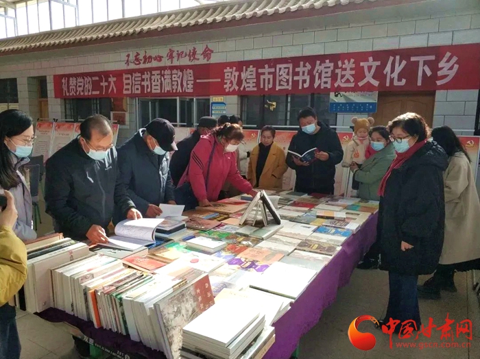 中國甘肅網(wǎng)11月15日訊 (本網(wǎng)記者 張?zhí)m琴)為了深入學(xué)習(xí)宣傳貫徹黨的二十大精神,近日敦煌市圖書館組織開展“禮贊黨的二十大,自信書香滿敦煌”送文化下鄉(xiāng)活動(dòng)受到當(dāng)?shù)厝罕姎g迎。據(jù)了解,活動(dòng)將在敦煌市各鄉(xiāng)鎮(zhèn)持續(xù)進(jìn)行,通過黨的二十大主題圖片展和敦煌精品圖書展相結(jié)合,利用文化惠民下基層的方式,向基層群眾宣傳黨的二十大精神,豐富人們的精神文化生活。