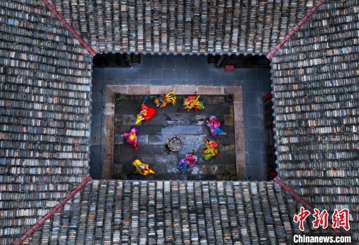 安徽省宣城市郎溪縣省級非遺小馬燈在郎溪縣濤城鎮(zhèn)慶豐村大佛山養(yǎng)心谷展演?!±顣约t 攝