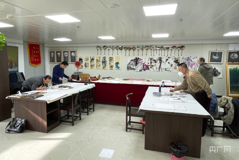 市民在美術館內進行書畫創(chuàng)作(央廣網發(fā) 慶陽市委宣傳部 供圖)