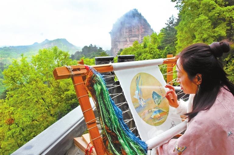 “應(yīng)用現(xiàn)代審美思維創(chuàng)作出麥積山石窟系列刺繡文創(chuàng)作品,麥積刺繡藝術(shù)品的觀賞價值和實用價值會進一步凸顯。”曹苑春說。除此之外,畫繡、雙面繡團扇、香包、刺繡宮燈、刺繡擺臺等作為裝飾生活的藝術(shù)品,已被很多人所喜愛,刺繡作品正以全新的面貌走入尋常百姓家。