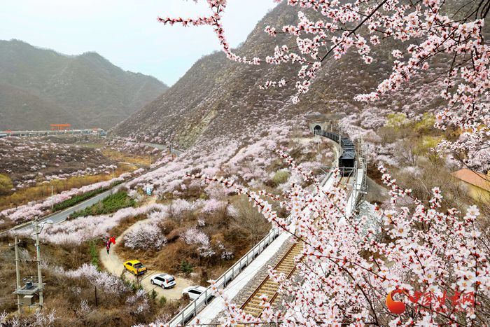陽春三月,桃之夭夭。在崇信縣的漫山遍野上,朵朵桃花迎來盛放期。微風吹來,暗香浮動。近看,朵朵嬌俏的桃花層層疊疊,錯落有致。遠看,漫山紅遍如霞似錦,爛漫壯觀。特別是一列列火車穿行而過,與桃花撞了個滿懷,奔向充滿希望的春天。