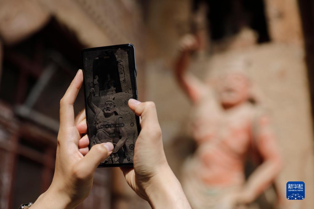 4月1日,游客在麥積山石窟參觀。新華社記者 方欣 攝