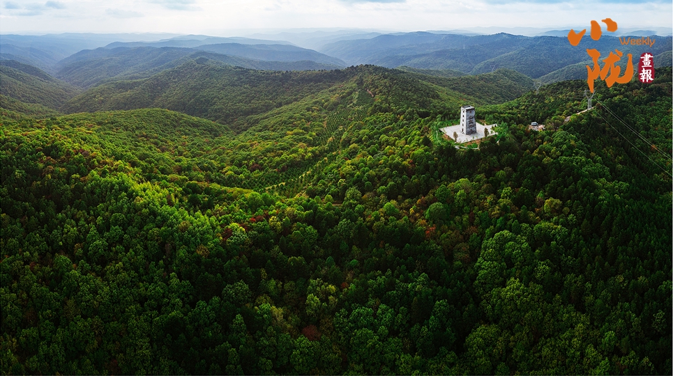 林中風(fēng)光秀麗,碧翠如黛,峰巒疊起,在陽光之下若隱若現(xiàn),好似一幅圖畫。