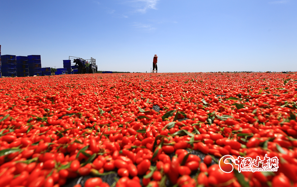 近日,嘉峪關(guān)市新城鎮(zhèn)一公司的1.89萬(wàn)畝頭茬枸杞迎來(lái)采收季,枸杞種植戶搶抓晴好天氣采摘、拉運(yùn)、晾曬枸杞,枸杞園內(nèi)外一派繁忙的豐收景象。