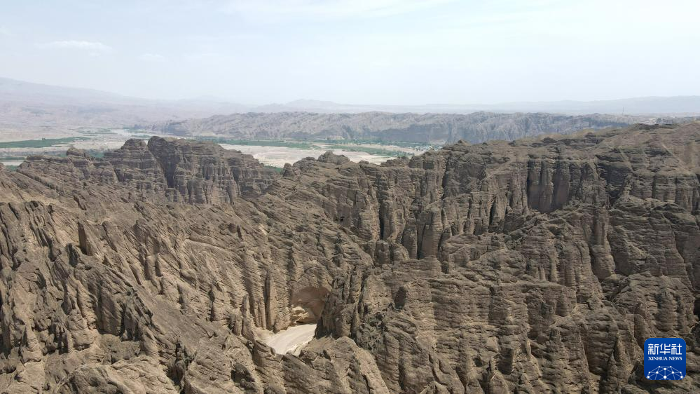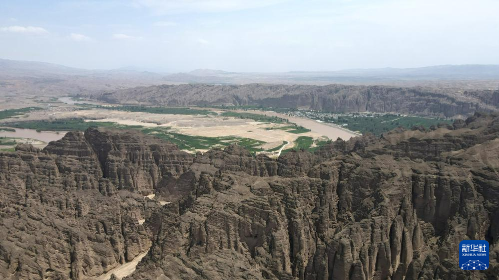 這是位于甘肅省白銀市景泰縣中泉鎮(zhèn)龍灣村的黃河石林景觀。黃河石林千峰競奇、峽谷蜿蜒,與黃河遙相呼應,形成山環(huán)水轉(zhuǎn)、動靜結(jié)合的自然奇觀(7月11日攝,無人機照片)。新華社記者 張可任 攝