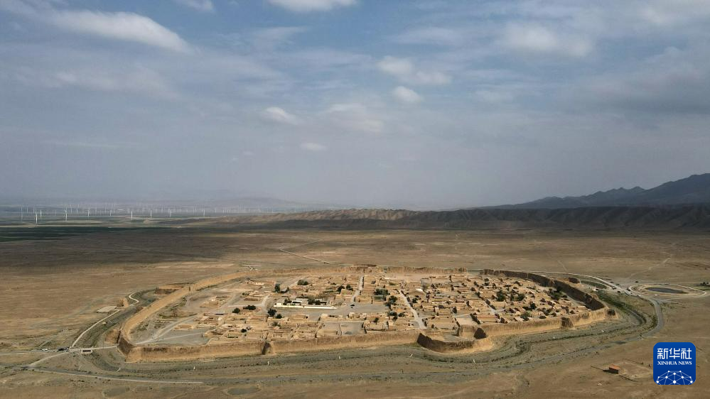 這是位于甘肅省白銀市景泰縣寺灘鄉(xiāng)的永泰古城。永泰古城始建于明萬歷年間,為當時的軍事要塞,因形似金龜,又名“永泰龜城”。古城城圍周長1.7公里,高12米,2006年被命名為全國重點文物保護單位(7月11日攝,無人機照片)。新華社記者 方欣 攝