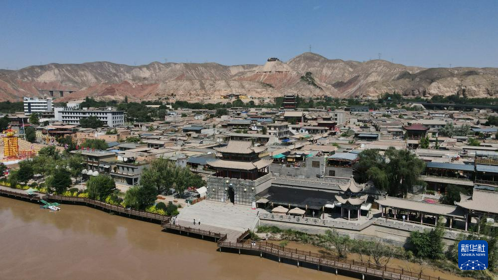 這是位于甘肅省蘭州市西固區(qū)黃河北岸的河口古鎮(zhèn)。河口古鎮(zhèn)歷史悠久、文化底蘊深厚,現(xiàn)留存商賈碼頭、戰(zhàn)略要塞、交通樞紐等遺跡(7月9日攝,無人機照片)。新華社記者 陳斌 攝