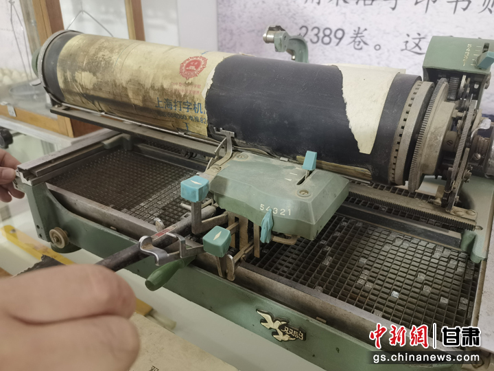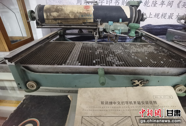 近日,甘肅省白銀市靖遠(yuǎn)縣大壩村民俗博物館吸引游人參觀。圖為老式打字機(jī)。劉玉桃 攝