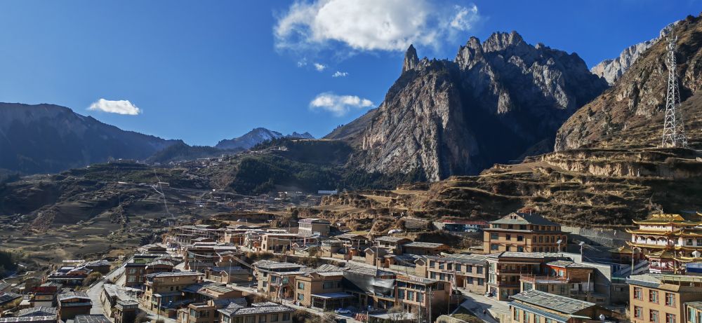 雪后初霽,群山環(huán)抱的扎尕那半隱在繚繞云霧中。一排排榻板房隱匿其間,錯落有致。正值深冬,這里的村民們?nèi)蚤e不?。捍罱ㄐ聵?、翻修舊房、鋪設步道,準備迎接新一年的旅游旺季。