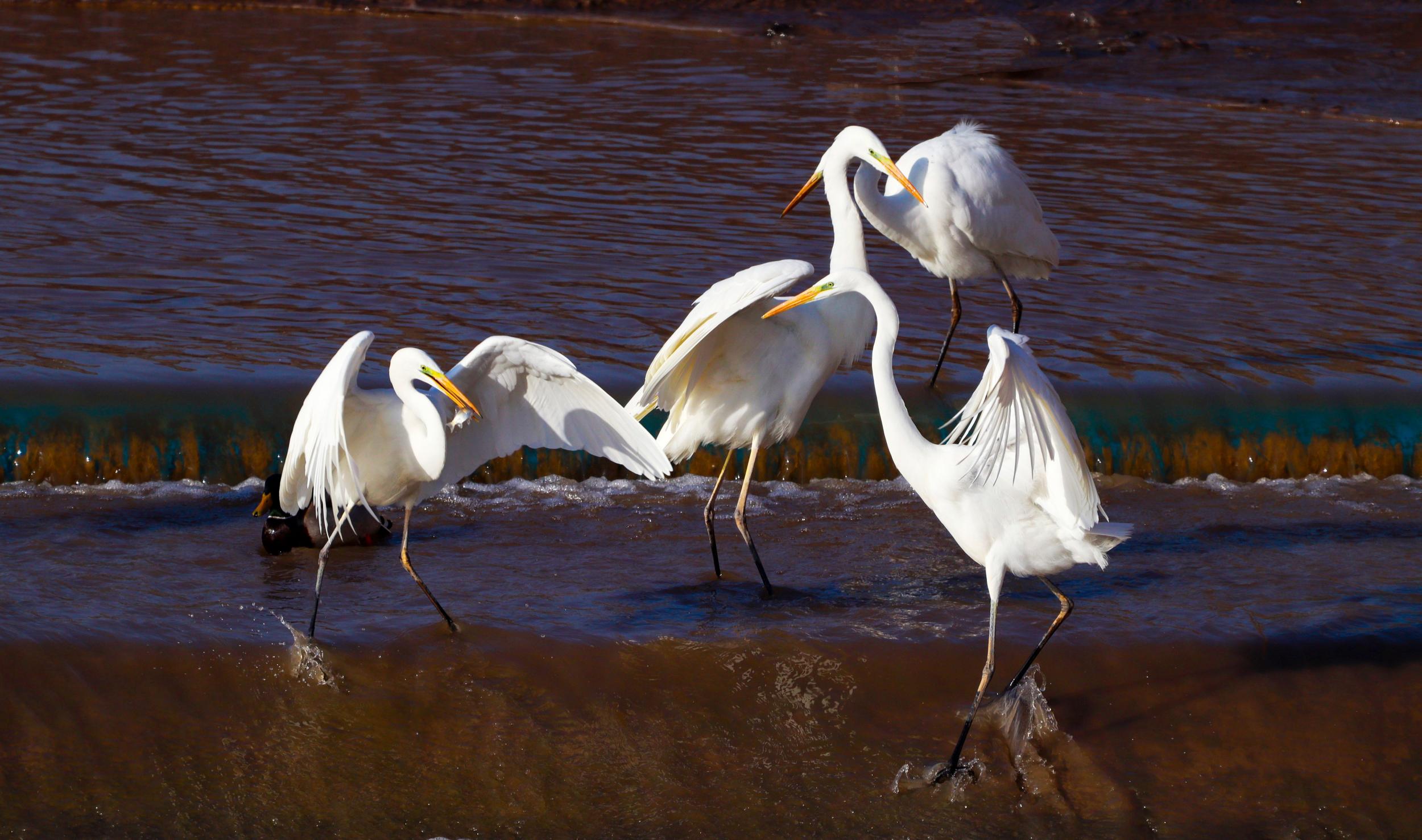 近日,在崇信縣汭河,一群白鷺時(shí)而展翅高飛,時(shí)而在水里嬉戲、覓食,構(gòu)成了一幅美麗的自然生態(tài)畫(huà)卷。