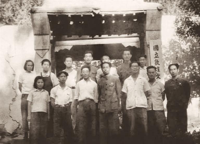 有一件事情在趙季平腦海里久久縈繞,難以忘懷。當年,趙季平的父親、著名畫家趙望云曾有兩次不平凡的敦煌之行,但時隔多年,隨著時間的推移,他多次尋找父親敦煌之行的資料都未能如愿。這次在敦煌采風,趙季平又托朋友多方打聽,希望能幫助他尋找到那段難以釋懷的歷史。原敦煌市政協(xié)副主席高德祥先生多方努力,幾經周折,終于在敦煌研究院的歷史檔案中發(fā)現(xiàn)了唯一一張照片:是趙望云代表人民政府接收國立敦煌藝術研究所時,與張明坦、常書鴻、段文杰、李承仙、范文藻、孫儒僴等人在研究所大門前的合影。高德祥囑托好友韓蘭魁先生將照片帶給了趙季平。