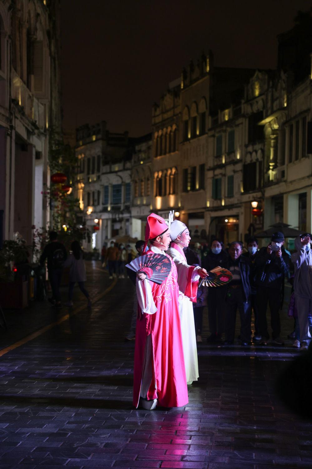 ↑觀眾在??隍T樓老街觀看瓊劇表演。瓊劇又稱“海南戲”,是國家級非物質(zhì)文化遺產(chǎn)之一。在海南欣賞瓊劇,是認識當(dāng)?shù)匚幕Ⅲw驗當(dāng)?shù)匚幕囊粋€好方式。新華社記者 張麗蕓 攝(資料圖片)