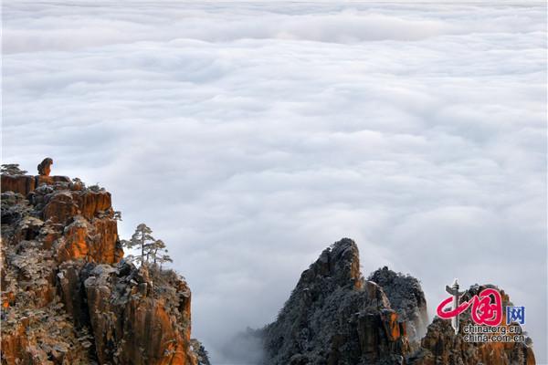 只有一個(gè)黃山:雪后日出、云海同現(xiàn) 美輪美奐