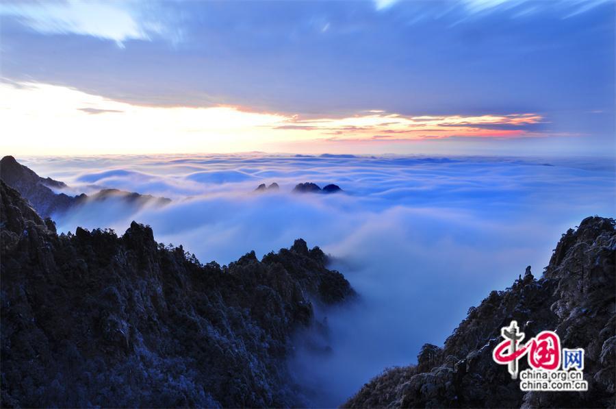 原標題:只有一個黃山:雪后云海日出朝霞描繪絢麗畫卷