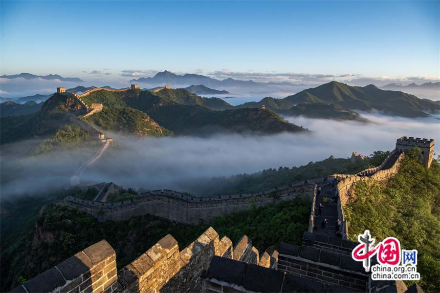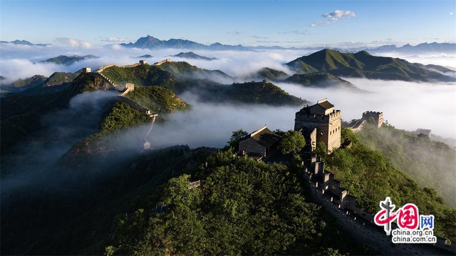 5月26日,雨后早晨,河北省承德市灤平縣境內(nèi)的金山嶺長城出現(xiàn)云海奇觀,變化莫測間。