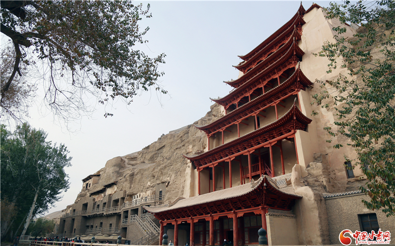 據(jù)敦煌研究院資料顯示,石窟以彩塑為主體,四壁及頂均彩繪壁畫,地面漫鋪花磚,窟外有窟檐(或殿堂)、棧道,窟窟相通相連,是以石窟建筑、彩塑和壁畫三者合一的佛教文化遺存。