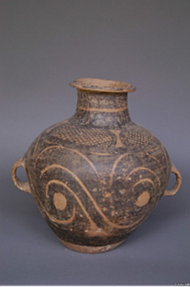 (漩渦紋彩陶雙耳罐)