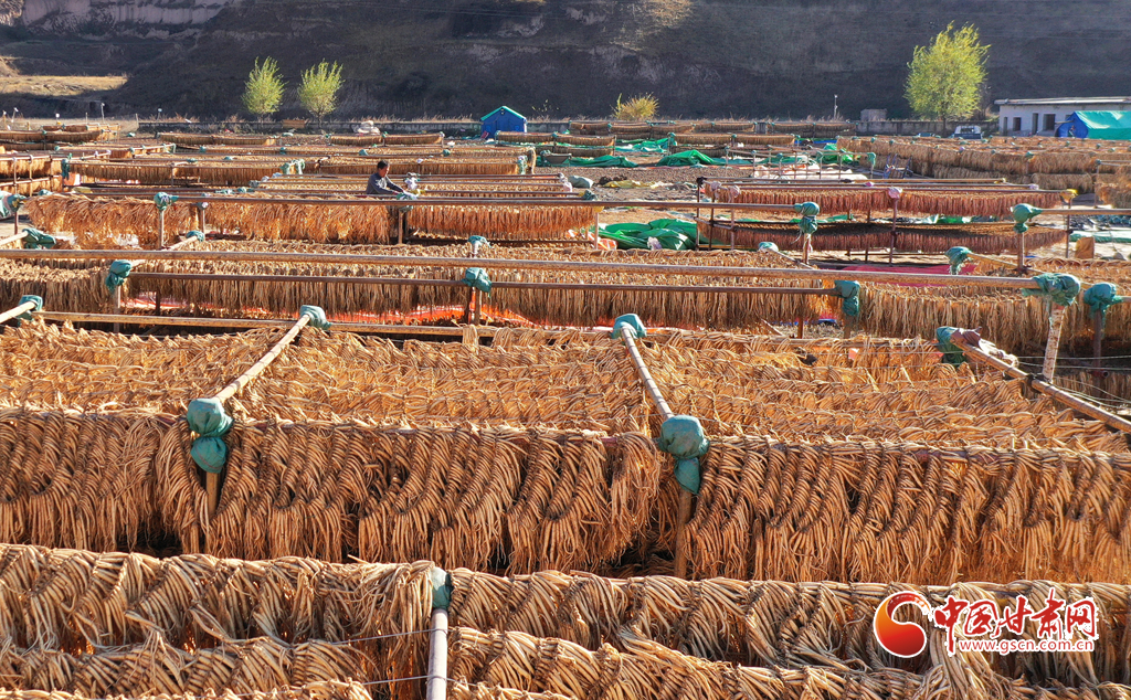 初冬時節(jié),天氣晴好,走進岷縣十里鎮(zhèn),藥香四溢,隨處可見藥農(nóng)利用晴好天氣忙著晾曬中藥材的場景。