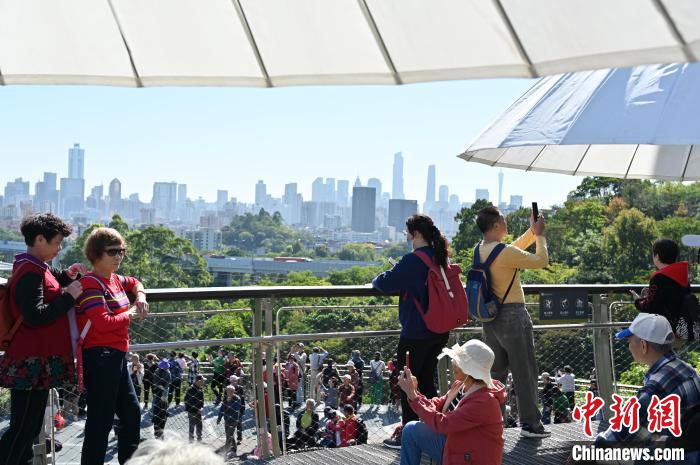 11月29日,廣東廣州,云蘿植物園正式開園,游客在園區(qū)遠眺廣州塔等城市景觀。中新社記者 陳楚紅 攝