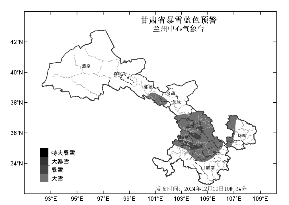 中國甘肅網(wǎng)12月9日訊(西北角·中國甘肅網(wǎng)記者 沈文剛)12月9日10時(shí)34分,蘭州中心氣象臺發(fā)布暴雪藍(lán)色預(yù)警,預(yù)計(jì)9日15時(shí)至10日20時(shí),蘭州、白銀、定西、臨夏等市州及甘南北部、天水西部、平?jīng)鑫鞑?、慶陽西部、張掖南部、武威南部將出現(xiàn)大雪;臨夏南部、定西西部、蘭州南部、白銀中部將出現(xiàn)暴雪。