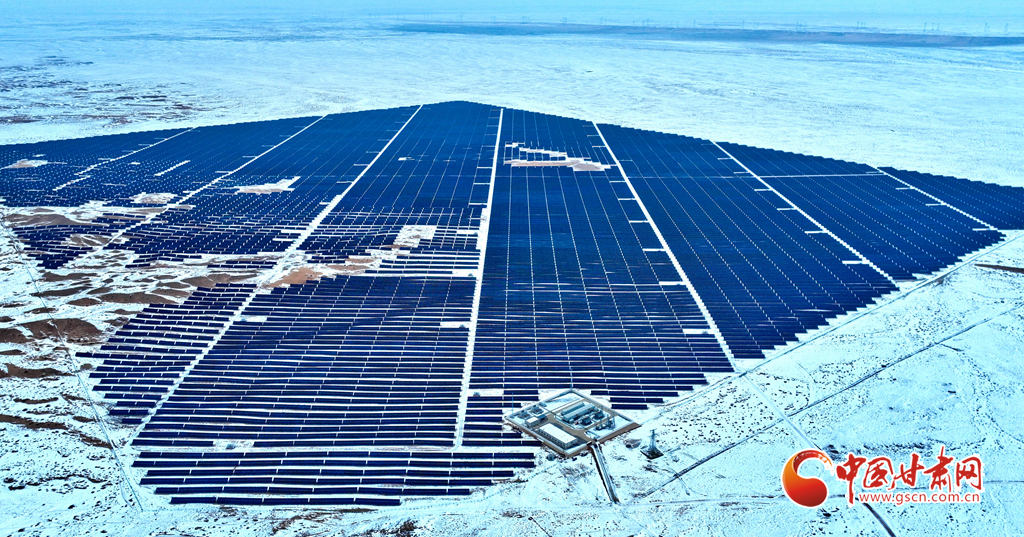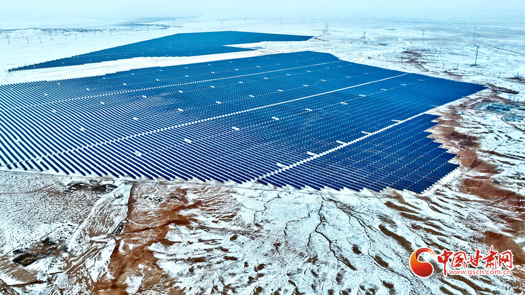 12月18日, 一場(chǎng)大雪過后,大漠深處的張掖市臨澤縣北部灘新能源產(chǎn)業(yè)園內(nèi),81.1萬(wàn)千瓦光伏治沙光伏集陣和85萬(wàn)千瓦風(fēng)力發(fā)電機(jī)組群,在防沙治沙的同時(shí)將光熱和風(fēng)力轉(zhuǎn)換為電能輸入國(guó)家電網(wǎng),推進(jìn)了“西電東送”輸電工程建設(shè)。
