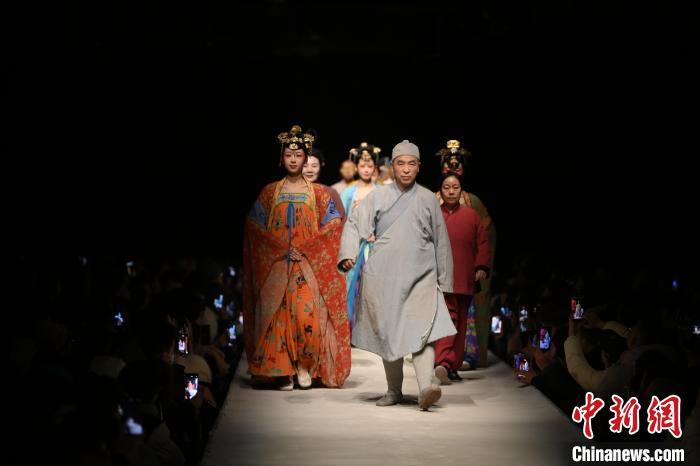 2025年1月9日晚,在甘肅敦煌大型室內(nèi)情景體驗(yàn)劇《又見(jiàn)敦煌》劇場(chǎng)內(nèi),游人在行走中觀看演出。中新社記者 李亞龍 攝