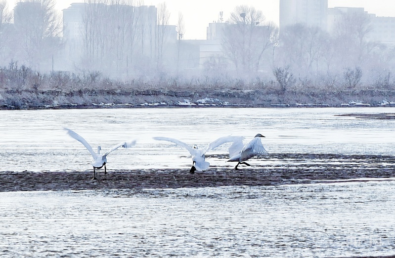 近日的一場降雪讓甘肅張掖黑河濕地國家級自然保護區(qū)高臺段銀裝素裹,在此棲息的大天鵝盡情在雪中引頸高歌、嬉戲歡鬧、振翅飛翔,成為一道亮麗的生態(tài)美景。