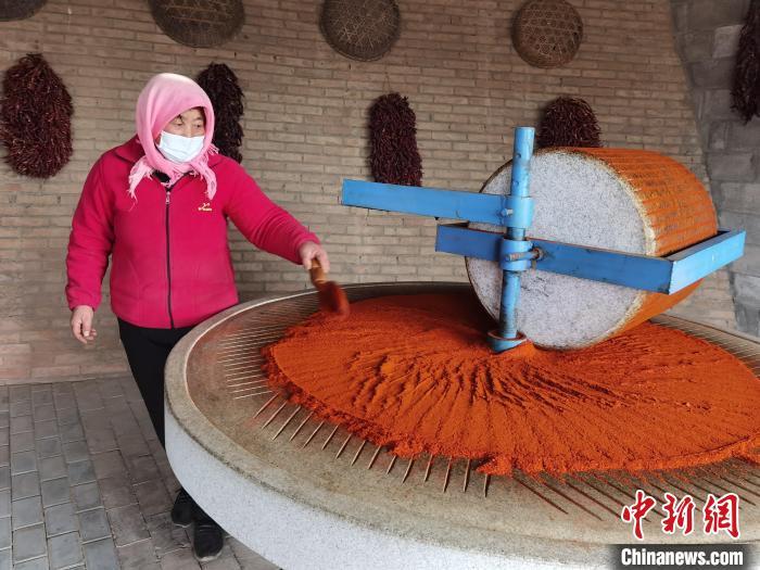 甘肅省慶陽市環(huán)縣莊子峁“辣嬸”直播宣傳自家的石碾辣椒面。(資料圖)安志鵬 攝