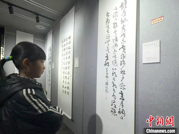 3月30日,一名女孩欣賞韓國書法家的書法作品。項(xiàng)菁 攝