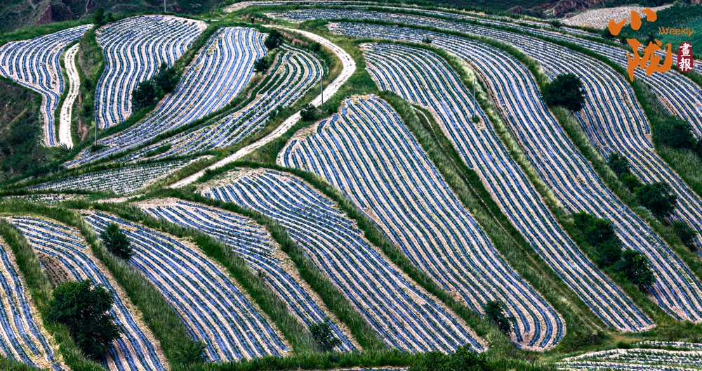 萬畝梯田錯落有致,層層彎曲盤繞,從高空俯瞰猶如大地“指紋”。當?shù)亟?jīng)過多年的小流域治理,昔日的荒山禿嶺,今日滿目綠意盎然。那些蜿蜒曲折的梯田線條猶如畫家筆下的抽象作品,充滿了韻律感和節(jié)奏感。尤其是在清晨或傍晚時分,柔和的光線將梯田勾勒得更加立體,光影交錯之間,每一幀畫面都像是一張精美的攝影作品。