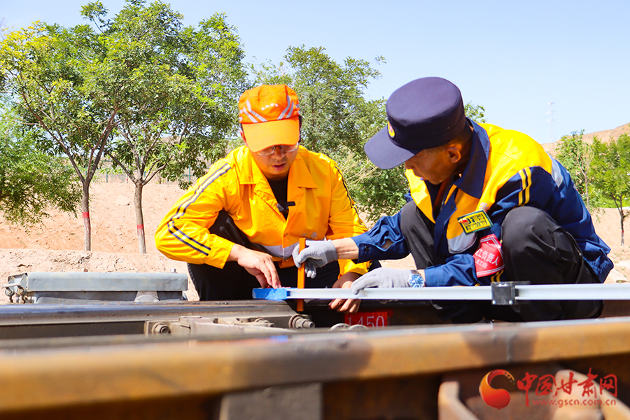 “道岔、絕緣接頭和小半徑曲線是我們?nèi)粘8邷匮膊榈闹刂兄?,如果檢查不到位,有時(shí)候幾毫米都可能影響軌道電路或道岔搬動(dòng),進(jìn)而影響安全運(yùn)輸,所以必須做到一絲不茍,絕不能讓設(shè)備帶‘病’堅(jiān)守。”在檢查到絕緣接頭和道岔尖軌時(shí)他們檢查的格外仔細(xì)。