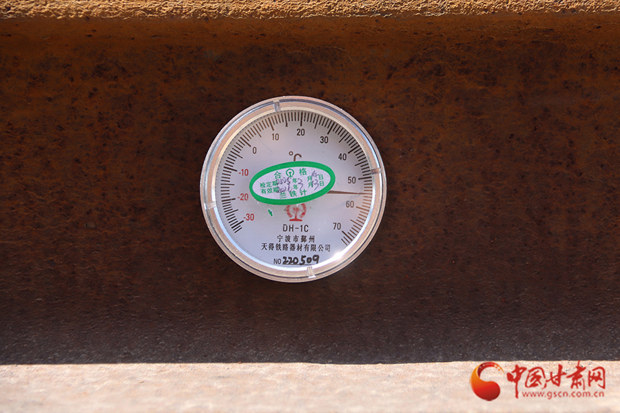 “樊工長(zhǎng),測(cè)一下此時(shí)的軌溫是多少?”到達(dá)蘭州北編組站下行到達(dá)場(chǎng)后,劉亞雄一邊擦拭著額頭不斷滾落的汗珠,一邊向樊勇喊道。樊勇熟練地將軌溫計(jì)貼在軌腰上,金屬表盤上的指針猶如上了發(fā)條,瞬間直飚半圈定格在54℃!