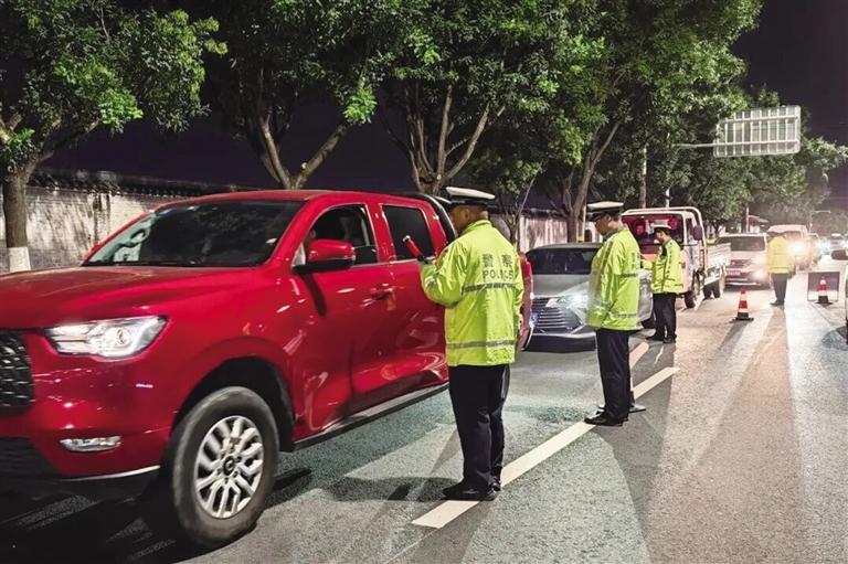 甘肅公安全力保障節(jié)日期間交通安全暢通。(圖為民警查酒駕) 記者 顏維俊 攝