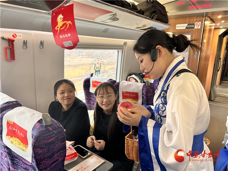 為讓旅客沉浸式感受隴原文脈,22名身著特色服飾的專業(yè)講解員在車廂間流動(dòng)講解,將文物背后的故事娓娓道來(lái)。